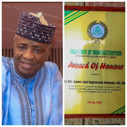 The Institute of Administration at Ahmadu Bello University (ABU), Zaria, has honoured Senator Aliyu Magatakarda Wamakko, CON, PhD, with a Certificate of Honour in recognition of his distinguished national service, visionary leadership, and impactful contributions to the development of the Institute.