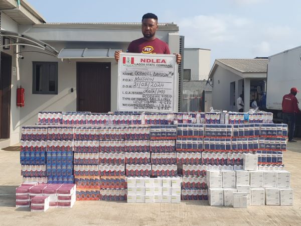 Further arrests included Godwill Davidson in Lagos, who was found with large quantities of codeine syrup and pills, and Yahaya Ibrahim in Kogi State, who was caught with 42,000 tramadol pills. In Oyo State, two suspects were arrested with 267.5 liters of “skuchies,” a drug-laced beverage, and Canadian Loud.